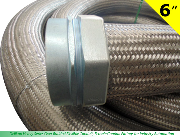 Delikon Heavy Series Over Braided Flexible Conduit, Female Conduit Fittings for Industry Automation