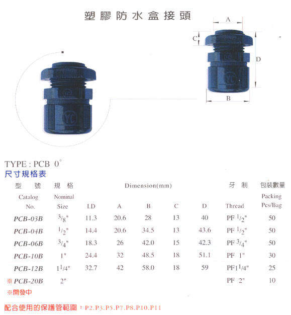 packing: Cotton, Nylon, Rubber or Copper cord) *Trade size: 3/8"~4"