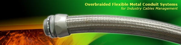 pre-assembled --- save time and labor costs. Electric Flexible Conduit systems for EMI shielding, abrasion and hot metal splashes resistance. Comprises a standard conduit construction, with metallic overbraid. Typically used for machineries, steel mills and petrochemical industrial cable protection