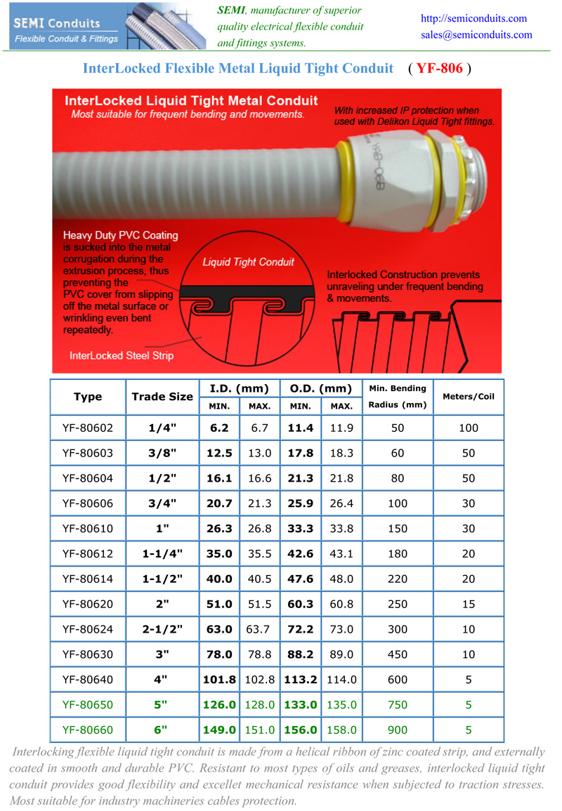 YF-806 InterLocked Liquid Tight Conduit in PDF File format. |