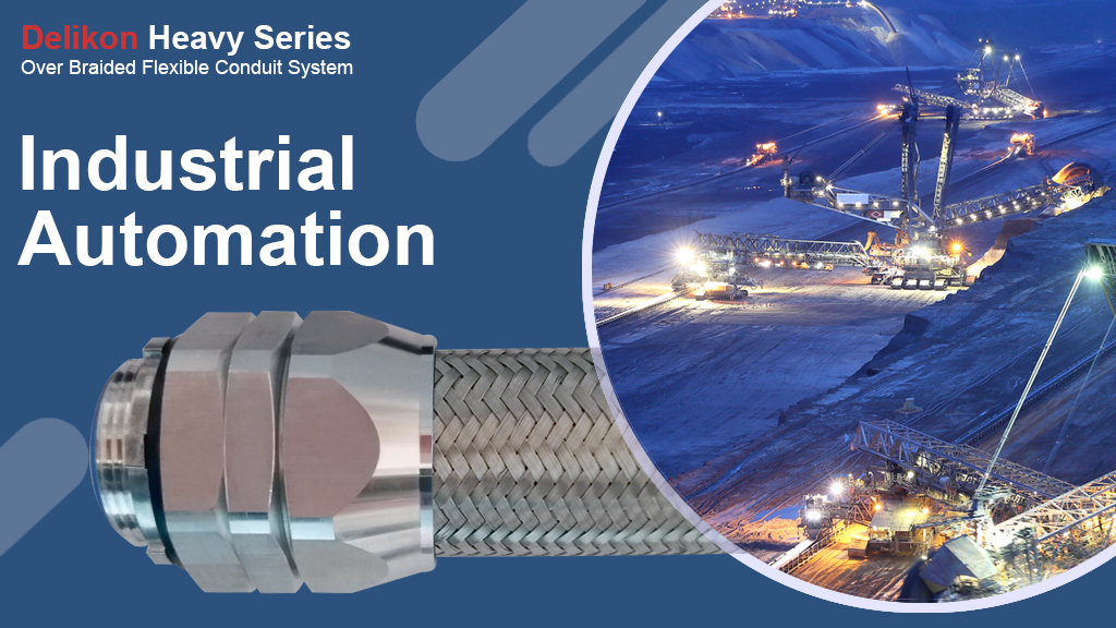 From underground coal mines to surface gold mines to the oil sands, Delikon heavy series over braided flexible conduit systems are designed to protect mining equipment, mining machines and rock excavation equipment wire and cable and increase your productivity. Delikon offers the broadest line of Heavy Series Over Braided Flexible Conduit and EMI RFI Shield Termination Heavy Series Connector in the mining and infrastructure industries for protection and EMI RFI shielding of underground and surface mining equipment electrical and automation cables. Delikon flexible cable protection solutions cover the whole automation and IT landscape, from sensor level to complete process automation, protecting and shielding PLC PAC cables, and VFD cables. |